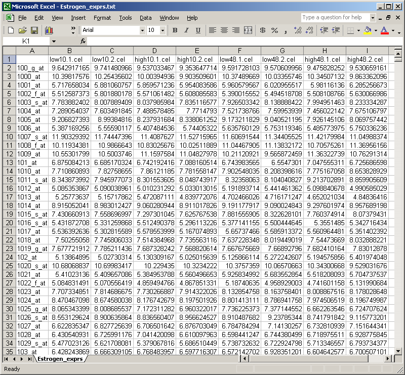The table of normalized expression values can then be imported into Excel.