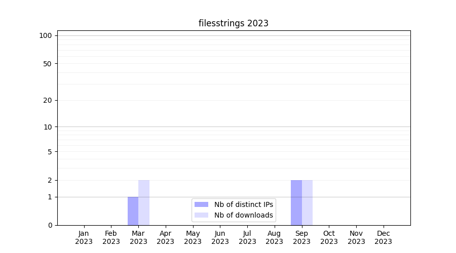 Number of downloads for annotation package filesstrings, year by year, from 2025 back to 2014 (years with no downloads are omitted):