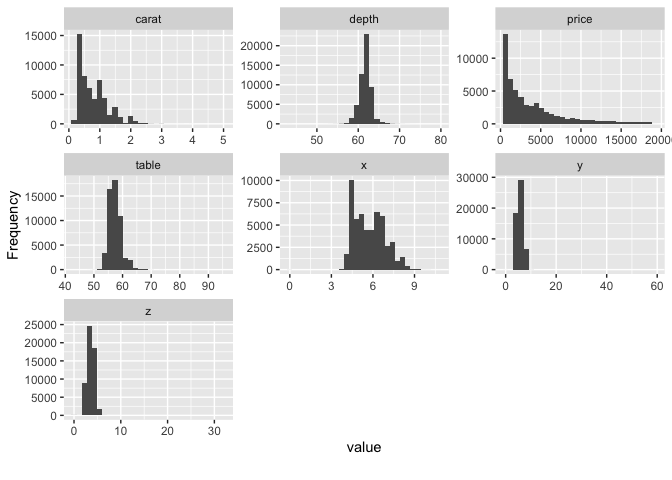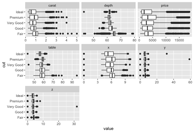 ## View quantile-quantile plot of all continuous variables by feature `cut`