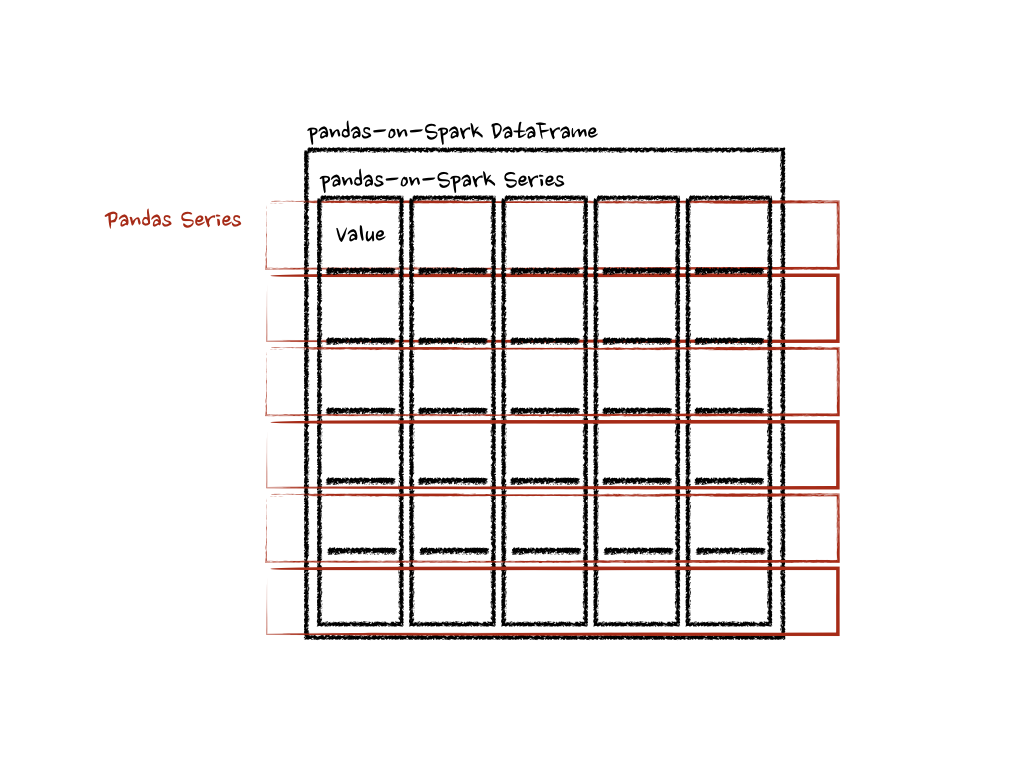 Under the hood, each batch of pandas-on-Spark Series is split to multiple pandas Series, and each function computes on that as below: