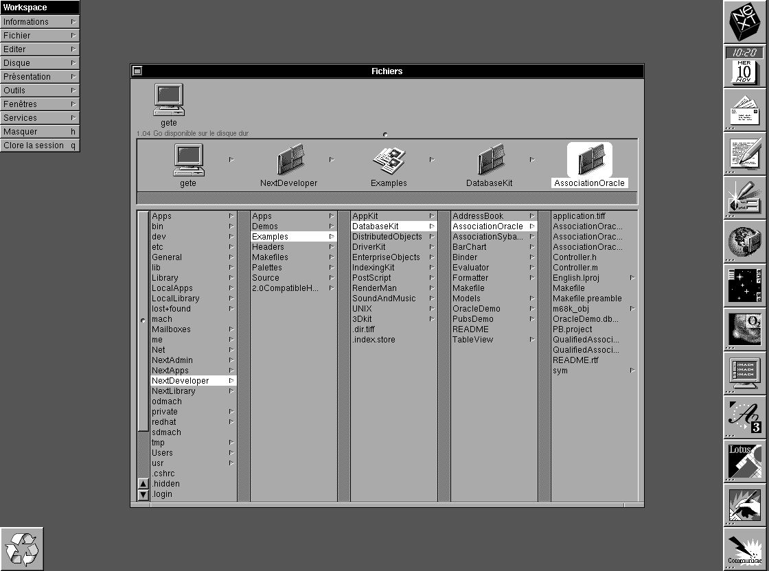 Entre las herramientas revolucionarias de NeXTStep, la primera por orden de aparición en pantalla era indiscutiblemente el File Viewer. Se abría al arranque del sistema y permitía moverse entre directorios y ficheros de un modo muy agradable. La innovación era que uno siempre sabía dónde se encontraba, gracias al camino de iconos. Más que un gestor, era un verdadero navegador, que podía visualizar en diferentes modos: iconos, listas y browser.