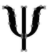 Vectorizing text (here a "y" in the symbol font) transforms it into an object, that is, a vectorized curve modifiable by pulling on its points and with the help of the "Curves" dialog box.