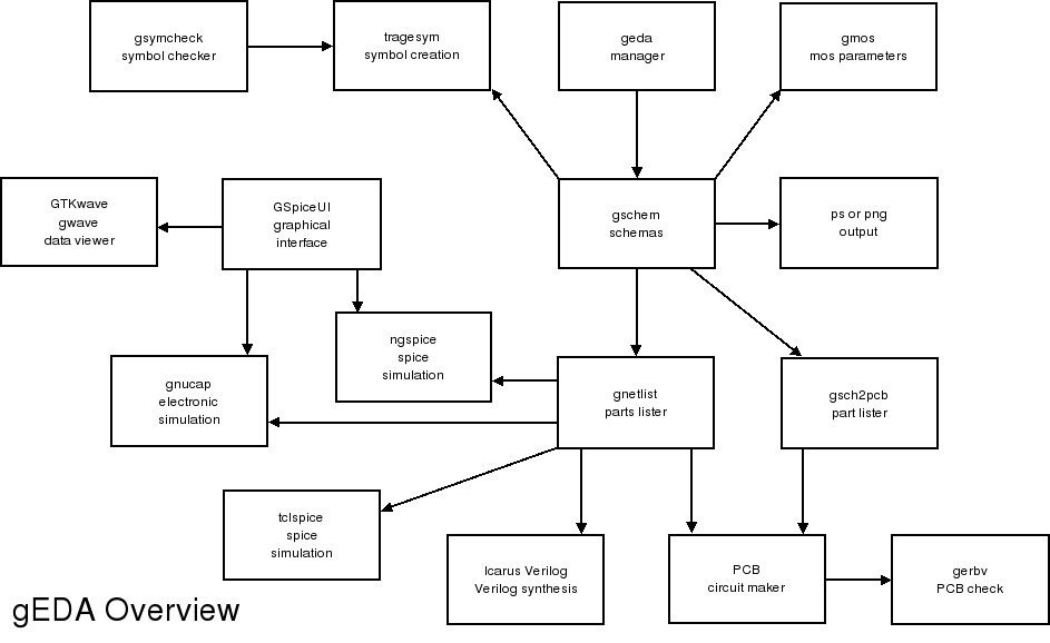 gEDA ist ein Satz freier Werkzeuge (frei im GPL Sinn). gEDA