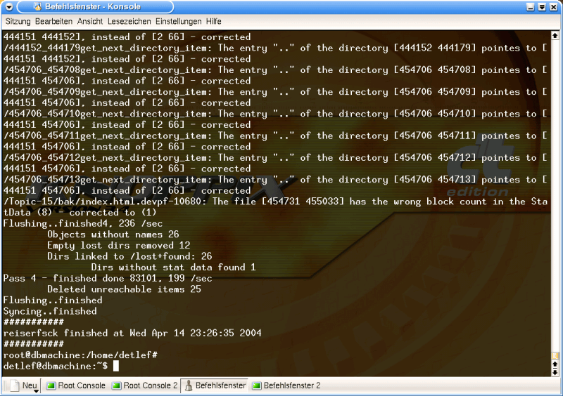 This report about a real-life data loss shows that it can sometimes have ill effects, and describes the bits and bytes' heroic rescue by a professionally operating Linux tool called 'reiserfsck'.