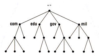 The DNS database structure is shown in figure 2. The whole database looks like an inverted tree with the root on the top. The name of the root is the tag NULL, but this is written with a single period ("."). Every node on the tree represents both a partition of the whole database, as well as a DNS domain. From now on, each domain can be divided in partitions that are called subdomains that are derived as children of the parent nodes.