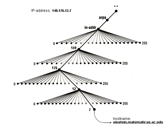 The domain "mathematics.ac.edu" would then have the reverse domain name of: "12.176.149.in-addr.arpa" and the computer einstein.mathematics.ac.edu correspondingly is made with "7.12.176.149.in-addr.arpa".