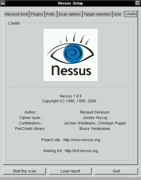 Por último mas não o menos importante, o último tab abre a janela de créditos, contendo também o número da versão. Ou seja toda a informação a fornecer quando se utiliza o nessus num projecto diferente ... Bem, deve ser algo do género !