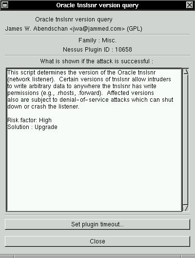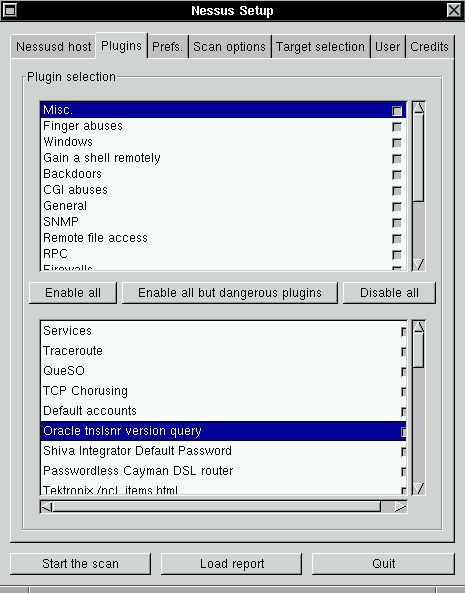 Claro, que existe demasiada informação a dizer relativamente aos plugins mas um livro não seria suficiente. Um bom modo de entender o seu funcionamento e o modo como são escritos é lê-los a partir do directório /usr/local/lib/nessus/plugins directory. Obrigado, novamente a Renaud Deraison e contribuintes pelo excelente trabalho.