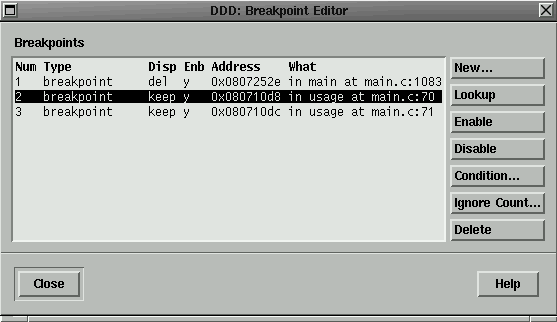 - Menü seçeneklerinden Source->Edit Breakpoints
