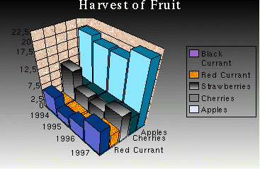 Bir sayılar tablosundan çubuk grafiği oluşturabiliriz. StarOffice'in grafik oluşturma özelliklerinin hepsini burada sizlere yazmak istemiyorum, çünkü uygulamanın yeni sürümü çıkmadan önce yazımı bitirmek istiyorum. Hatırlatmak istediğim tek nokta var, o da çubuk grafiklerin OLE nesneleri oldukları, Windows'taki gibi çalıştıkları ve programın menüsü uygulamanınki içerisinde gömülü olarak gösterildiğidir.
