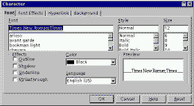 Genel menüden bu ve diğer özellikler değiştirilebilir ve bunlara girilebilir. Menü çubuğundan (Format>Character) bira veya biftek isteyebilirsin, ancak giriş yaptığınız her özellikte ilgili konuşma penceresini açmalısın.