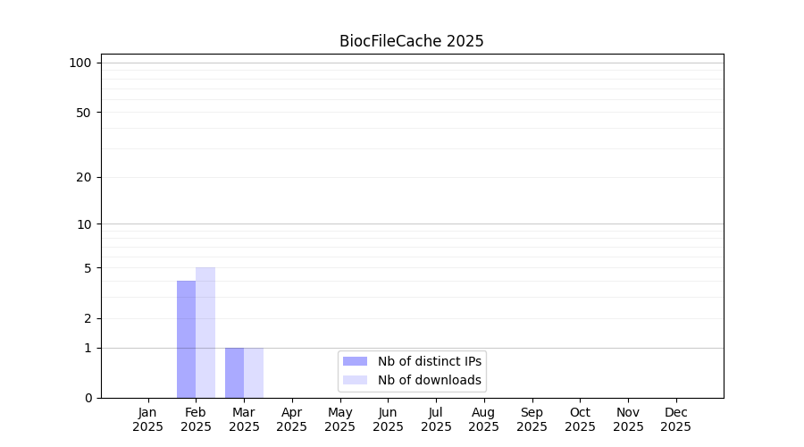 Number of downloads for annotation package BiocFileCache, year by year, from 2025 back to 2014 (years with no downloads are omitted):