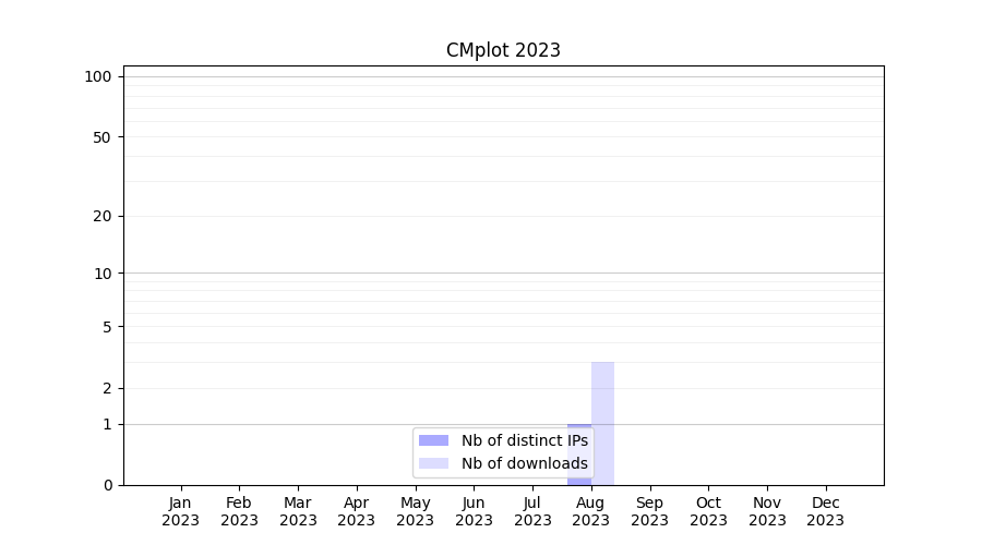 Number of downloads for annotation package CMplot, year by year, from 2025 back to 2014 (years with no downloads are omitted):