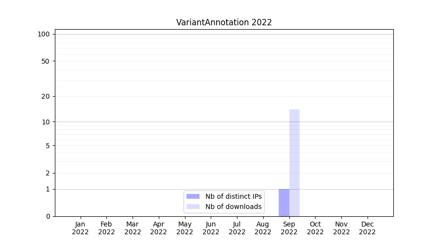 Number of downloads for annotation package VariantAnnotation, year by year, from 2025 back to 2014 (years with no downloads are omitted):