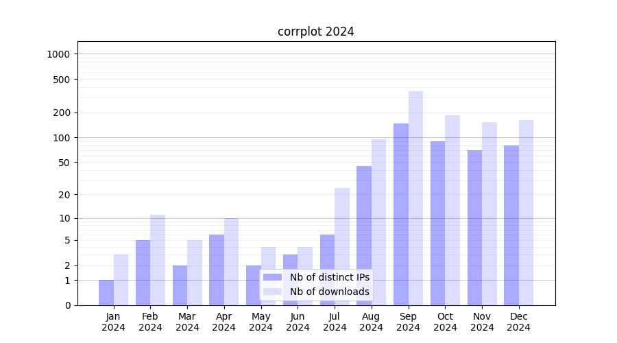 | Month | Nb of distinct IPs | Nb of downloads |