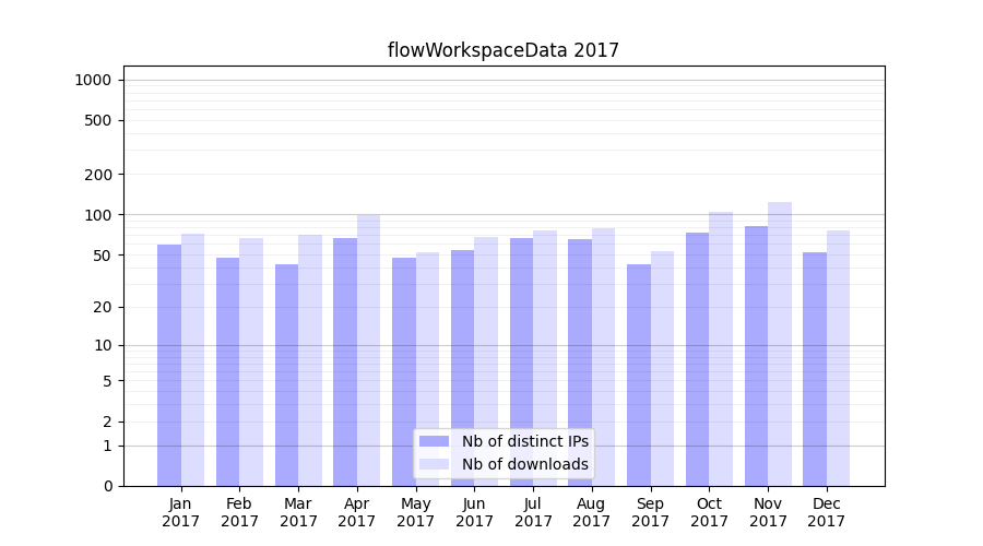 | Month | Nb of distinct IPs | Nb of downloads |
