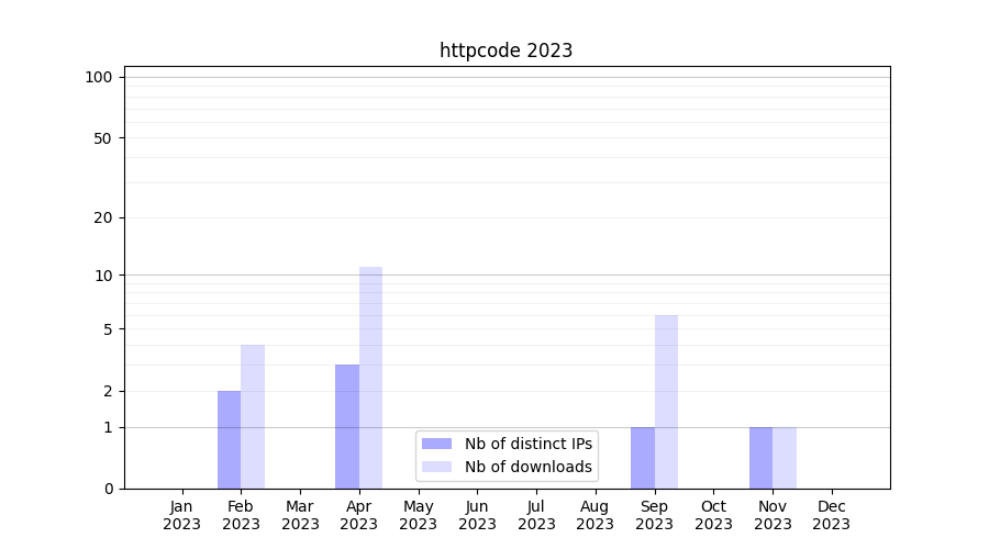 Number of downloads for experiment package httpcode, year by year, from 2025 back to 2014 (years with no downloads are omitted):
