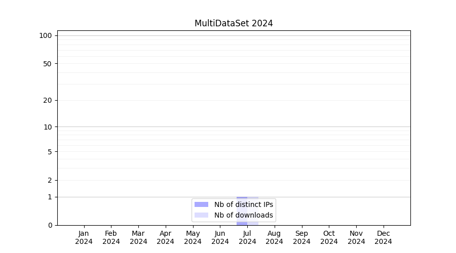 Number of downloads for workflow package MultiDataSet, year by year, from 2025 back to 2015 (years with no downloads are omitted):