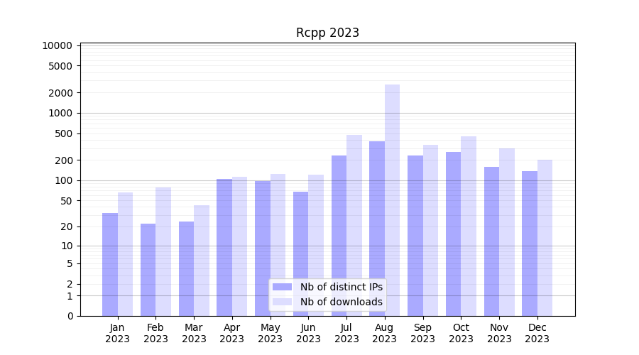 Download stats for software package Rcpp