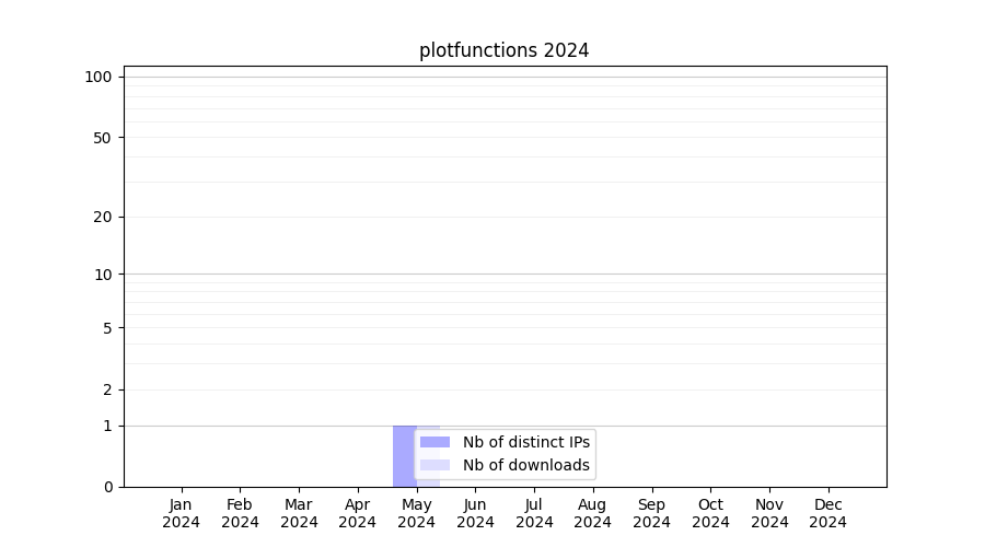 Number of downloads for software package plotfunctions, year by year, from 2025 back to 2014 (years with no downloads are omitted):