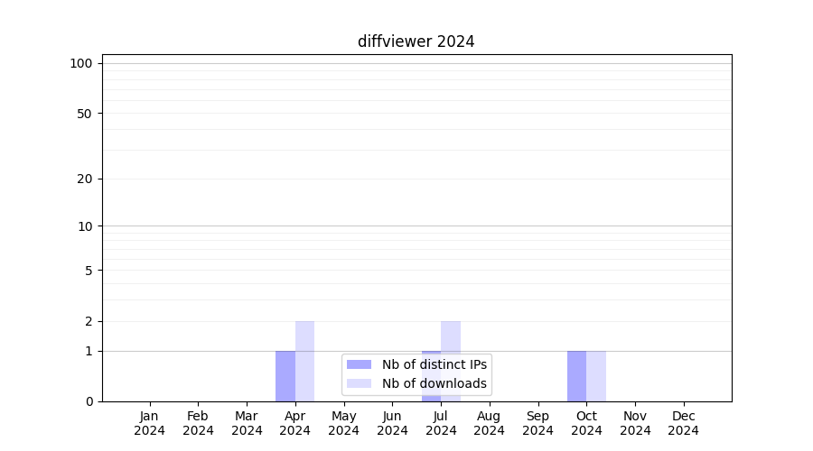 Number of downloads for annotation package diffviewer, year by year, from 2025 back to 2014 (years with no downloads are omitted):