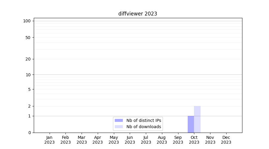Number of downloads for experiment package diffviewer, year by year, from 2025 back to 2014 (years with no downloads are omitted):