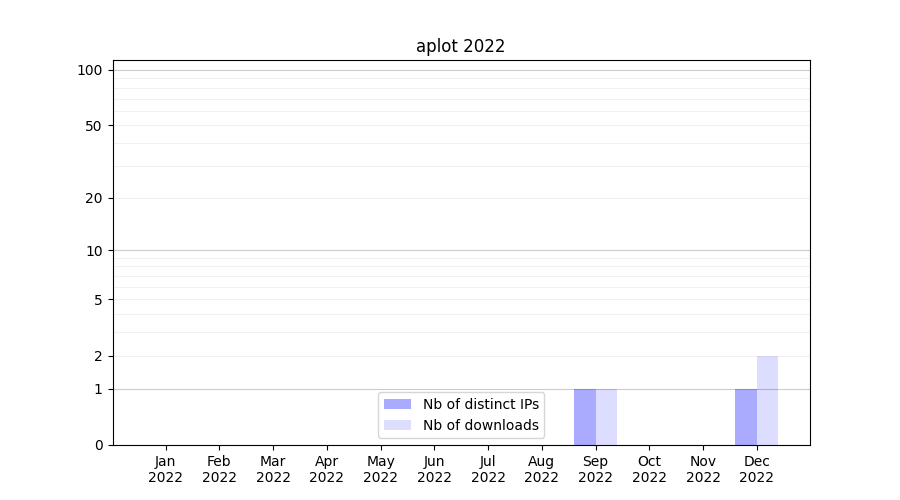 Number of downloads for workflow package aplot, year by year, from 2025 back to 2015 (years with no downloads are omitted):