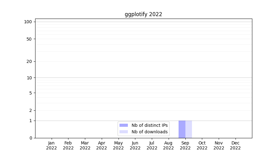 Number of downloads for workflow package ggplotify, year by year, from 2025 back to 2015 (years with no downloads are omitted):