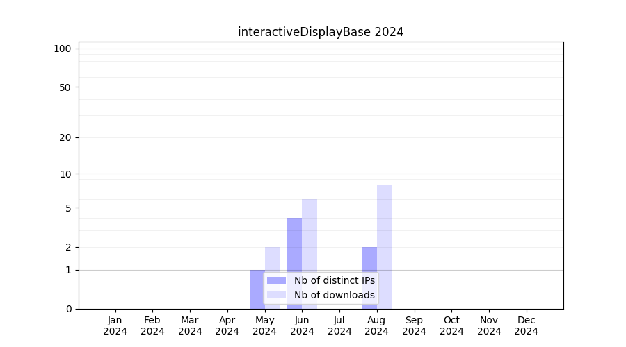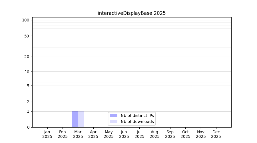 Number of downloads for workflow package interactiveDisplayBase, year by year, from 2025 back to 2015 (years with no downloads are omitted):