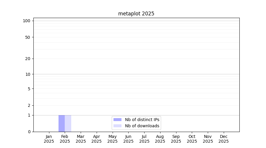 Number of downloads for workflow package metaplot, year by year, from 2025 back to 2015 (years with no downloads are omitted):